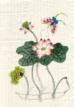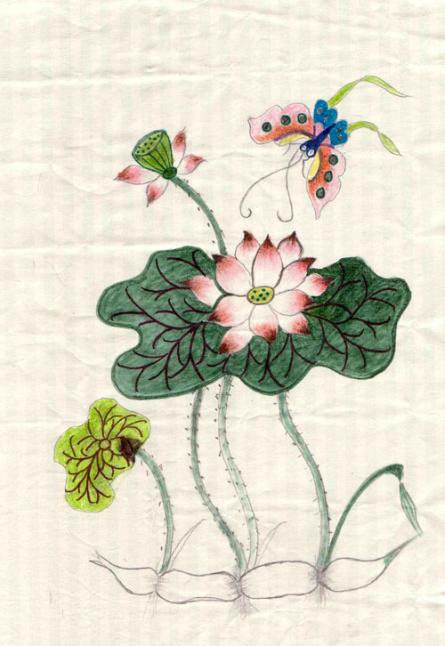 附图为母亲回国前留下的一幅尚未完成的荷花图,是老人亲手所绘。