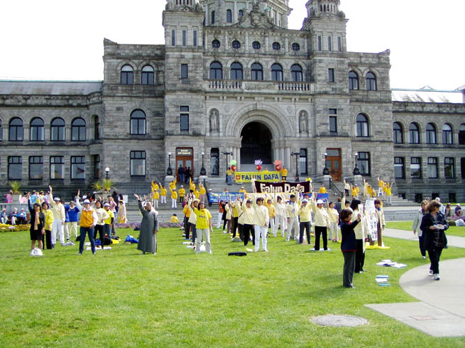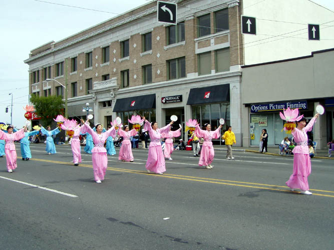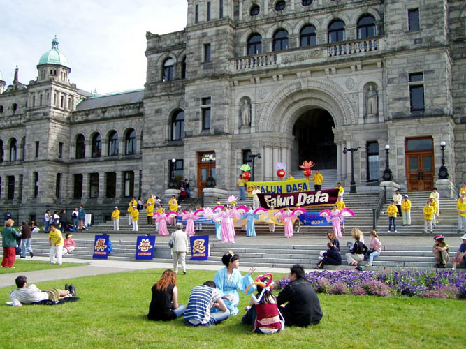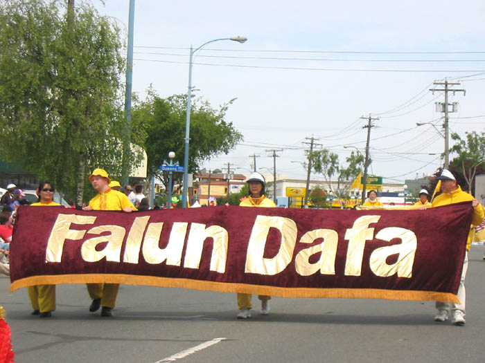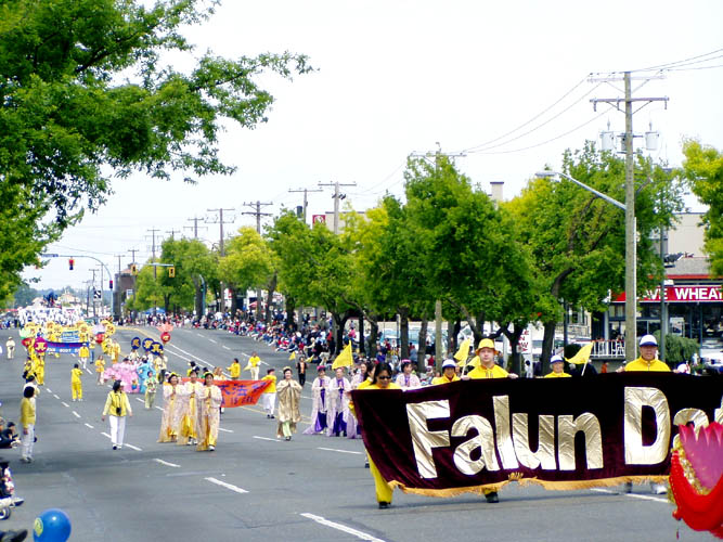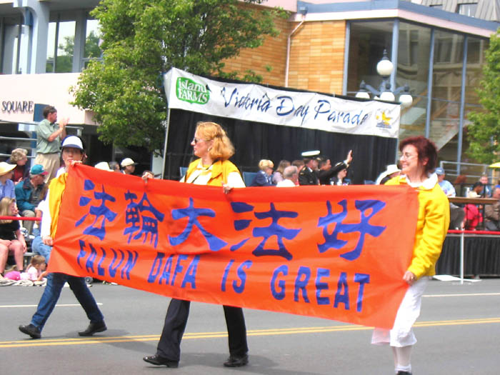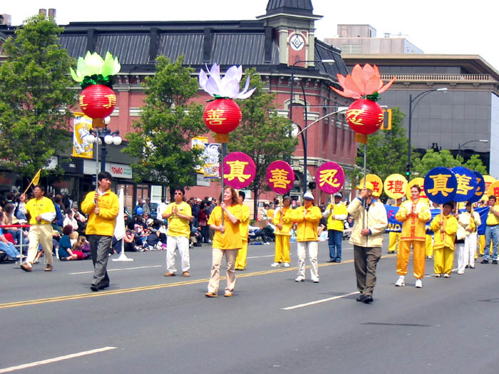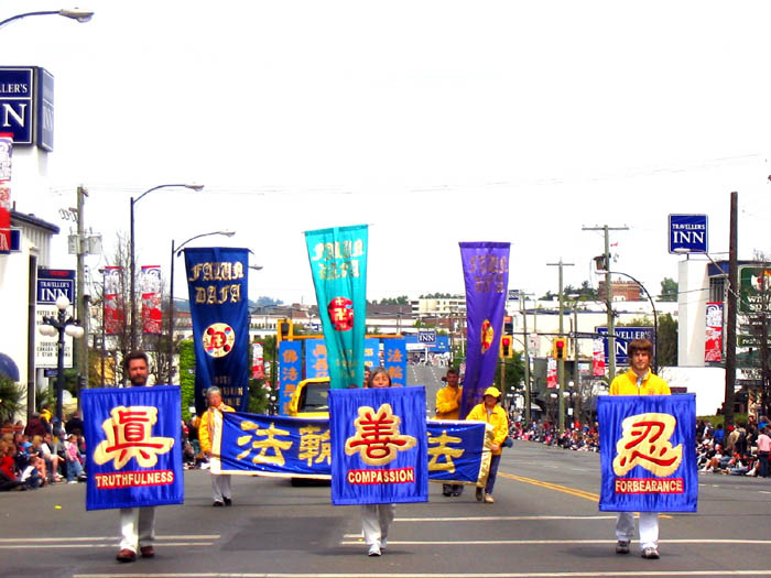上午9点半钟,游行开始。在参加游行的170多个团体队列中,法轮大法的队伍艳丽多彩,给美丽的维多利亚岛节更添喜庆气氛。真是风和日丽,祥和如意。