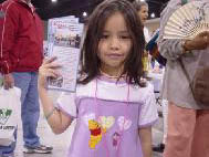 | 一个菲律宾小女孩主动向学员索要真相资料并发给过往游人 | 法轮功学员在法轮大法展台前演示功法 | |