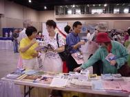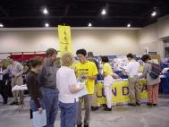 | 学员在法轮大法展台前 | 渴望了解法轮功真相的人们 | |