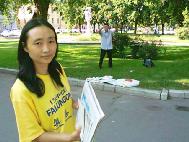 一位女士在听到法轮功时问我们是否可教她功法,因为瑞葛德市没有学员。我们说这当然没问题,而且如果未来她知道有更多人要学法轮功,可以告诉我们,我们会再来教他们。她对我们的提议非常感动并问:“如果你们都不收费,你们如何解决教功的费用问题?”我们告诉她:“我们和其他人一样要工作、要就学,在介绍法轮功时,我们是真正发自内心地在教功,如果你想学,我们绝对会帮你。”
