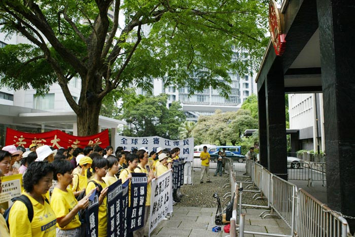 华盛顿中使馆前新闻发布会:把江泽民送上审判台(图)