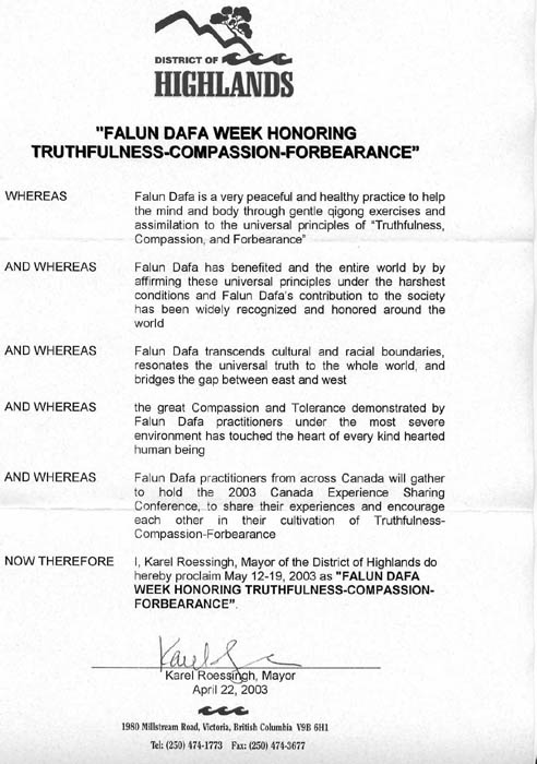 鉴于,来自加拿大各地的法轮大法修炼者即将聚集在一起召开2003年加拿大心得交流会,分享他们的经历及相互促进他们基于“真善忍”的修炼。