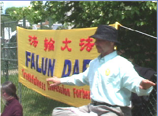 一整天,学功的人络绎不绝。尽管天很热,学员们一遍又一遍地炼功,教功,向游人洪法讲真相。法轮功的美好震撼了世人,很多人都询问附近的炼功点的地点和时间,表示要参加集体炼功。