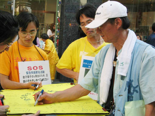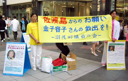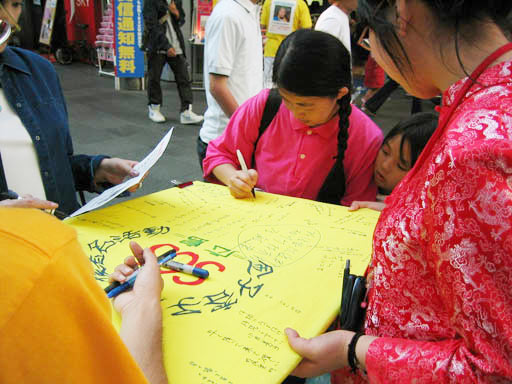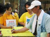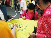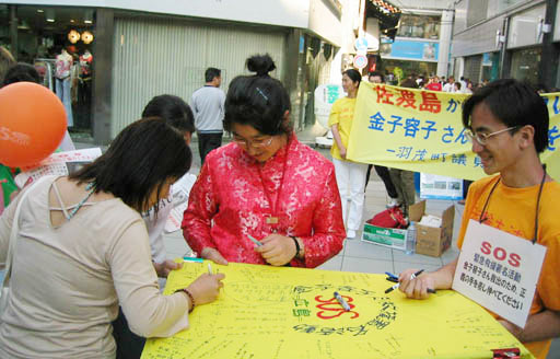 学员们虽然刚刚参加完鲜花节的游行,但大家都不顾疲劳,坚持向往来行人派发传单,呼吁人们来签名支持营救金子容子。