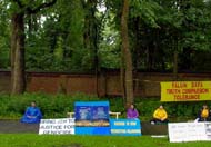支持全球大公审,瑞典斯德哥尔摩学员中使馆前整点发正念(图)