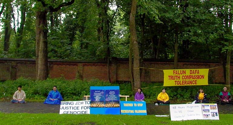 荷兰学员中使馆前绝食请愿:支持诉江案 营救李祥春(图)
