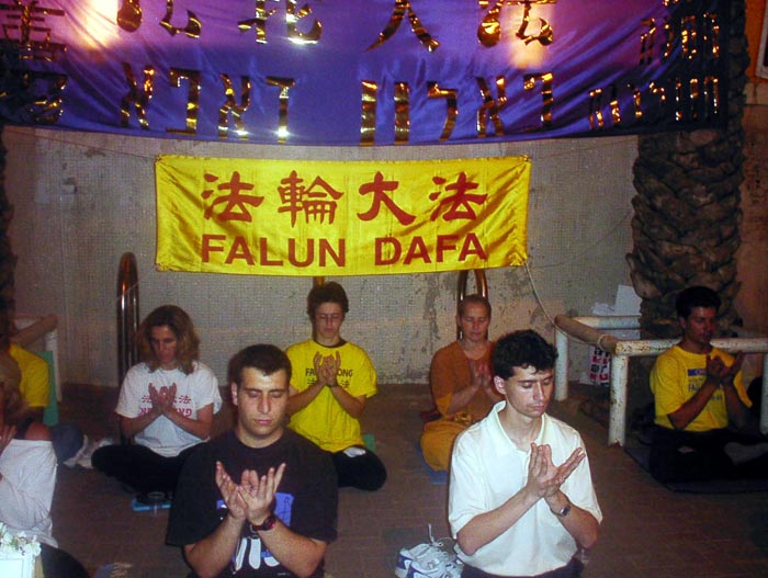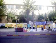 图片报道:以色列大法弟子连续40小时在中使馆前发正念