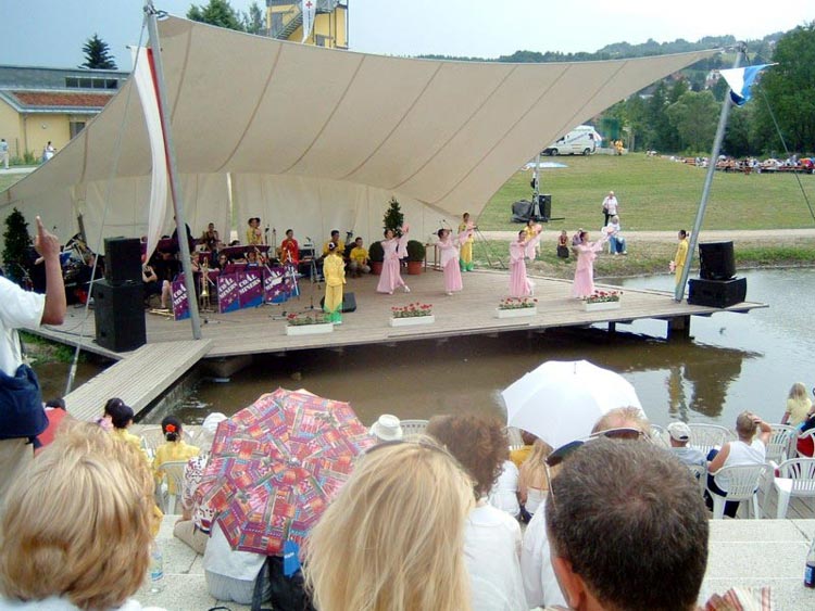 瓜德路普(法国)大法弟子在气功节上洪法讲真相(图)