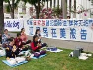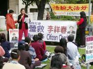 吴英年教授同时介绍了对起诉大陆独裁者江泽民“群体灭绝罪”诉讼案的情况。吴教授表示,在过去的四年里,江泽民发起的对法轮功的迫害已经夺走了至少720位无辜的法轮功学员的生命,江泽民一手建立和操纵的610办公室系统耗费大量的国库资金,在遍布各级政府、遍布全国各地的范围内对数以千万计的法轮功学员进行野蛮的迫害,江的所为已经构成了“群体灭绝罪”,被海外的法轮功学员告上伊利诺伊州的美国联邦法庭。2003年5月29日,伊利诺伊州众议院议员阿瑟-堂纳和迈克-博兰德联名发起了一封致伊州国会议员的信,敦促美国政府支持法轮功学员对江泽民的诉讼案。该信由80位伊州众议院议员联合签署。