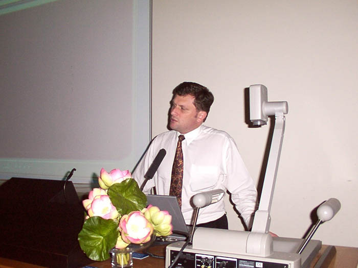 昆省法轮大法协会的发言人约翰.安德斯(John Andress)在座谈会上介绍了法轮功自1992年弘传于世的情况,并谈到1999年打压以前法轮功在中国受到了广泛支持。在发言中,他把被告江泽民对法轮功的镇压和希特勒对犹太人的灭绝性的屠杀作了比较。他说:“西方记者被邀请参观关押着几百名法轮功学员的中国劳教所,正如德国纳粹当年让记者采访他们的集中营一样,目的是欺骗外界。” 他在发言中还谈到江氏集团掩盖SARS实情的做法进一步揭示了其欺骗本质,并指出江氏的欺世谎言严重伤害了广大中外民众,特别是在法轮功这个问题上更是如此。安德斯先生还强调指出“反对江××对无辜法轮功的镇压不是反对中国,正相反,这是为与中国人民建立长久的合作关系,为世界各国之间能保持健康的友好关系,为维护人类的未来的正义之举。”