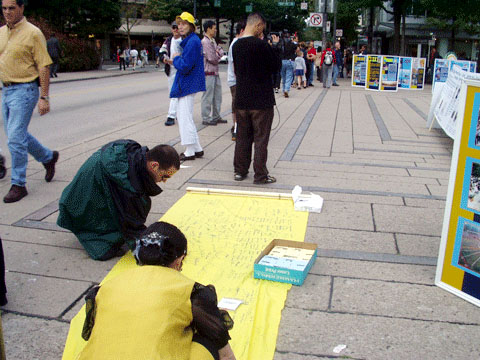 【明慧网二零零三年六月十七日】温哥华学员结合做好三件事,近期举行了多项活动,支持全球对江××的大审判,在人间揭露邪恶之首的罪行,使更多世人了解真相。