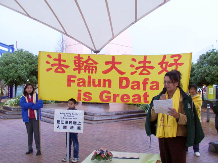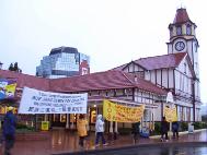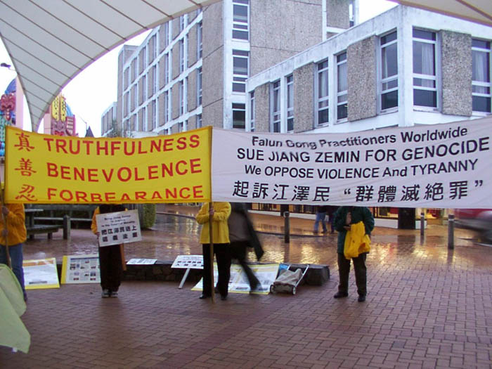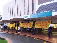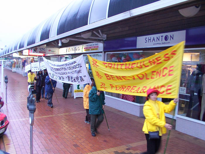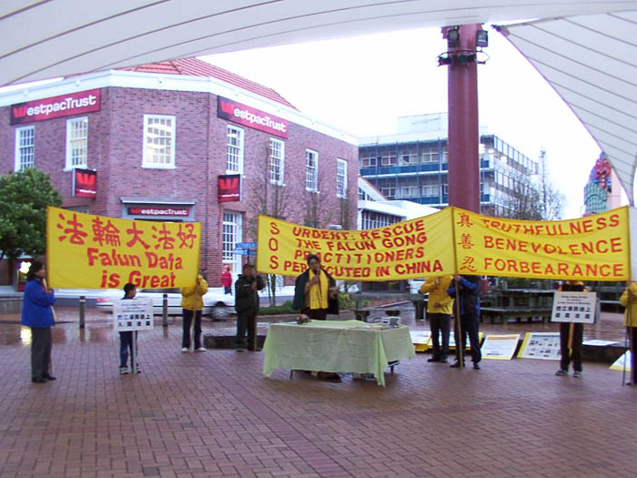 这是新西兰法轮功学员继6月11日奥克兰市中心游行和在中领馆前3天“绝食请愿,呼唤良知”活动之后进一步深入向新西兰民众讲真象的努力。