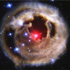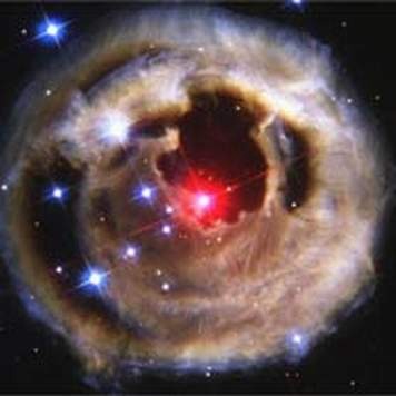 最令人惊奇的是,这不是新星或超新星爆发,在新星或超新星爆发时恒星外层会向周围空间喷溅,并显露出它炽热的星核。在膨胀到特别巨大时恒星表面仍然比较冷——总共只有2000℃,即为太阳表面温度低的三分之一。当天文学家看到“哈勃”拍摄的照片时,他们最初不敢相信自己的眼睛,因为任何时候都没有观察到恒星如此急速的变化。天文学家认为,恒星曾将自己大量的物质向周围空间喷溅,然后自己又开始膨胀,周围的尘埃正是喷溅的结果。天文学家已经知道,这颗恒星拥有伴星——另外一颗恒星,但是它的成因目前还不清楚。