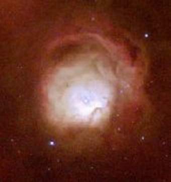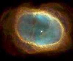 这里展示的一幅照片是编号为NGC 3132(非正式名称为南环形星云)的典型行星状星云,该照片是“哈勃”太空望远镜拍摄的。NGC 3132位于南半球上空,距离地球约2000光年,按照宇宙标准度量可以说非常近。像所有行星状星云一样,NGC 3132是一颗濒临死亡恒星周围一团正在膨胀的气团,它的横截面积约为0.5光年。