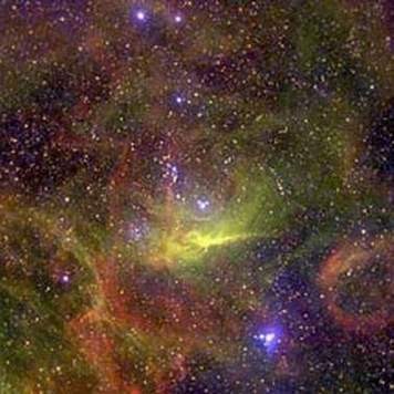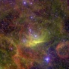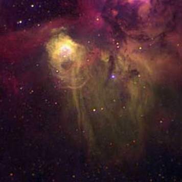 这幅惊人壮丽太空现象的照片是为庆祝“哈勃”太空望远镜在轨道上运行13年发表的,照片上呈现的是编号为M17恒星形成范围内的一个很小区域。像天鹅星云一样,M17位于离开地球约5500光年的人马星座中。