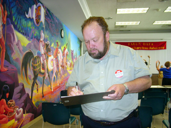 演讲结束后,刘易斯市长颁发了由他亲自签发的“法轮大法周”褒奖状。接着,刘易斯市长又亲自在法轮功学员征集签名的表格上签字,声援被中国政府非法关押的美国公民李祥春医生,要求美国政府立即采取有效行动,营救正在第六天绝食中的李祥春。