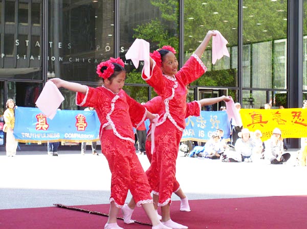 两台演出节目丰富多彩,参加演出的学员来自世界各地。从清新活泼的儿童歌舞,悠扬的中国民族乐器演奏,到西人学员演唱的中文大法歌曲和美不胜收的舞蹈,吸引许多行人纷纷驻足观看,博得全场观众的阵阵掌声。