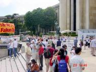 法国法轮功学员中使馆前支持全球公审江××(图)