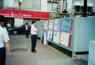 第二天下午,学员搬来洪法的小电视机,一位有心人看了资料后,驻足电视机前观看良久;有人在展板前、挂图前仔细阅读;有人念着横幅的字,念念有词的说:江泽民真坏,法轮功;有人看着炼功的学员对他朋友说:他们的炼功动作好美!