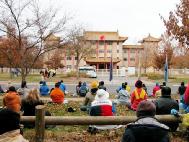 上午10点半,游行开始。这时天空阴云密集,寒风中更是下起了阵雨。但是,风风雨雨未能阻挡学员们的游行。