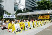香港法轮功学员于上周一至五下午五时半至七时半,在遮打花园进行静坐请愿活动,由于周日来参与的学员比平日多,故移师税务大楼外继续表达对诉江案的关注,静坐时间由下午四时至午夜十二时。之后,他们又回到遮打花园进行每天静坐两小时的活动,直至二十四日整个声援诉江案的静坐活动才告一般段落。