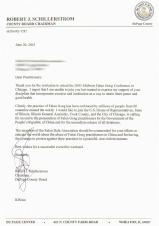 很明显,法轮功修炼已经得到了世界各地60个国家的千百万人们的欢迎。我愿意与美国众议院、伊利诺依州、伊利诺依州议院、库克郡和芝加哥市一道,共同呼吁中华人民共和国政府停止对法轮功学员的迫害,并立即释放所有被关押的人们。