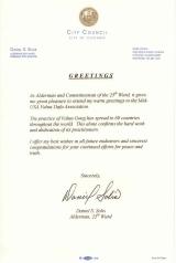 作为第25区议员和市政委员,我极其愉快向美中法轮大法协会表达我热烈的祝贺。