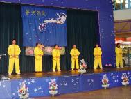 整场文艺演出穿插了大法的五套功法表演。主持人恰到好处地向观众介绍了法轮功和各套功法的基本原理。有西人弟子说,此次表演抱轮时如同抱了一个大火轮,能量强烈。