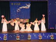 首先西人弟子和中国学员为观众表演了合唱“为你而来“;西人弟子弹奏并演唱了自己创作的歌曲。观众们为他们纯正的中文发音、优美的琴声和真挚的歌声所折服。舞蹈“莲花颂”和唐朝服装表演更是吸引了大量观众的目光和啧啧称赞。美丽的服装和莲花在女学员优美的舞姿中闪闪发光,传统中国音乐震撼人心。最后是学员自编的唐朝宫廷盛会形式的表演。不同的舞姿和服饰风彩显露了中国古代女性的典雅、庄重和高贵。同时受到欢迎的是学员刚劲的武术表演和广东话歌曲。