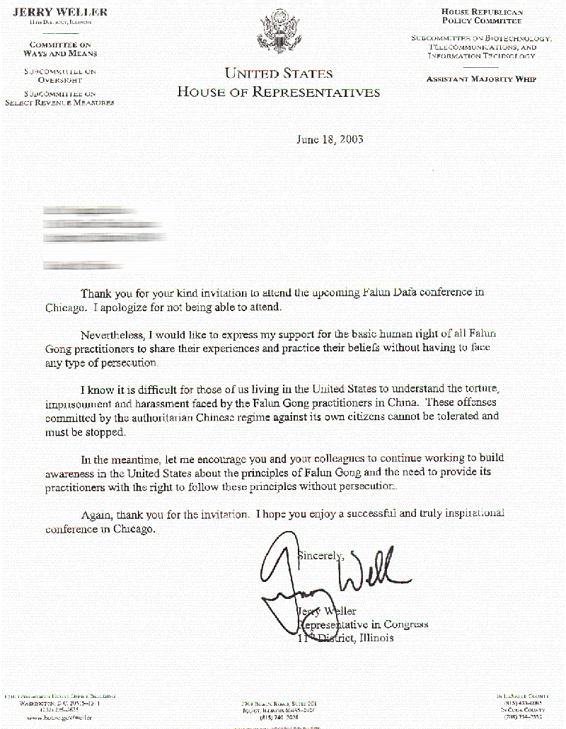同时,让我鼓励您和您的同修们继续努力,在美国让更多的人们知道法轮功的原则,以及赋予其修炼者自由遵循这些原则的权利的必要性。