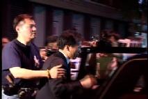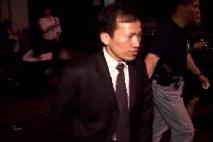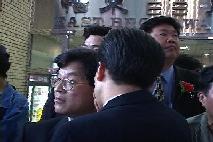 | 梁冠军和花俊雄23日晚在怡东酒楼外商量 | 梁冠军和花俊雄23日晚指挥围攻法轮功学员 | 花俊雄23日晚指骂法轮功学员 |