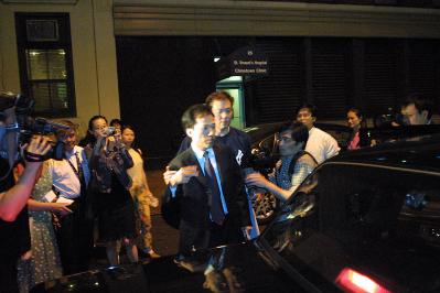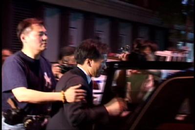 | 梁冠军26日凌晨被纽约警察带出第5警察分局 | |