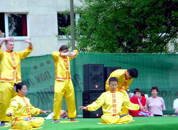 【明慧网2003年6月29日】二零零三年六月十九日在德国马格德堡市(Magdeburg)举行了一年一度的夏夜节。几百名大学生和客人们在大学区相聚,观看了各种各样的表演。在太极拳、空手道等其他功法表演后,伴随着解说,马格德堡的法轮功学员也展示了他们的功法。功法展示非常成功,公众们热烈鼓掌了十几分钟。在大学区有非常多的中国学生,他们清楚地看到了中国的造谣宣传与真实情况的巨大差别。通过大量的交谈,排除了中国的谣言宣传带来的误解。