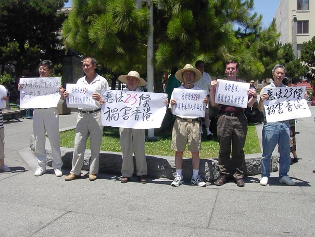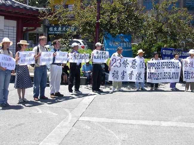 这次集会由“全球反对23条立法联盟”主办,美国香港华人联合会、香港澳门联合会、中国民主教育基金会、旧金山湾区法轮功学员、法轮功之友北加州分会、21世纪民主教育基金会、伯克莱加大的“中国论坛”、金山自由论坛、全球民主和平联盟以及全美学自联等十多家旧金山湾区华人社团参与。