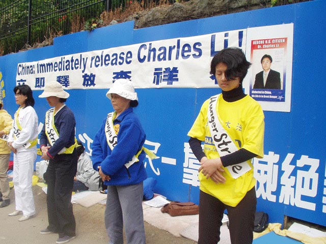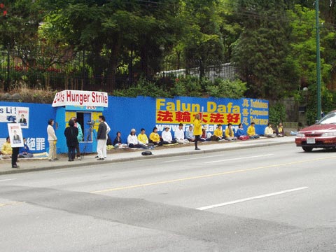 当听闻被非法关押在南京监狱的法轮功学员、美国公民李祥春正在绝食,以抗议中国对他的非法关押和迫害的消息时,温哥华学员立即决定从6月1日早晨9点至6月2日早晨9点集中在中领馆前发正念,声援李祥春,并要求中国政府立即释放李祥春;呼吁全球公审对法轮功学员实施群体灭绝的江××。