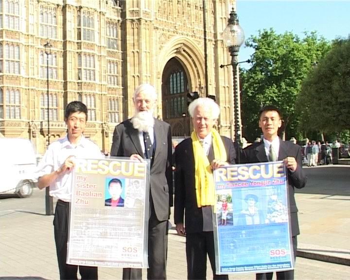 ![]() 莫恩勋爵(右二)和希尔顿勋爵(左二)支持营救法轮功学员在国内的亲人 |