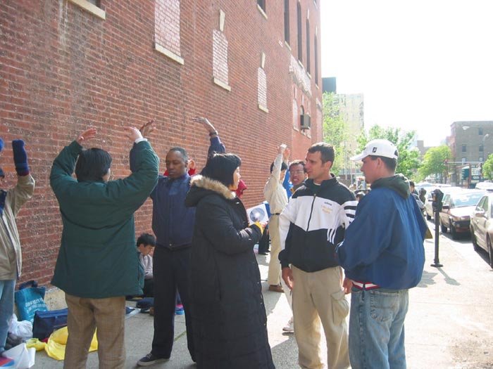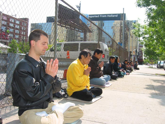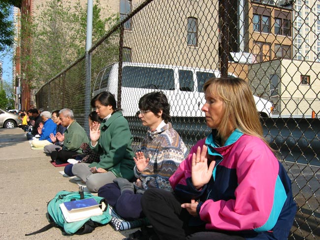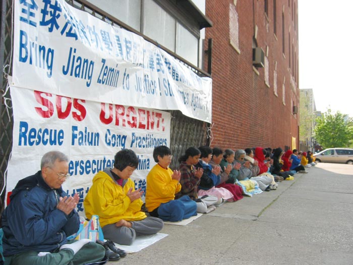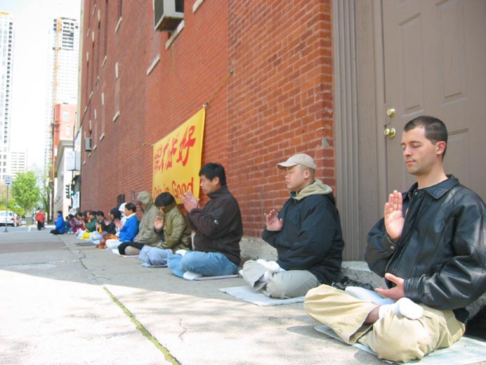 2003年5月31日(星期六),来自密苏里州、俄亥欧州、印第安纳州等美国中部地区的大法弟子和芝加哥本地的大法弟子,聚集在芝加哥中领馆前近距离发正念,为全球公审江泽民清除阴霾。