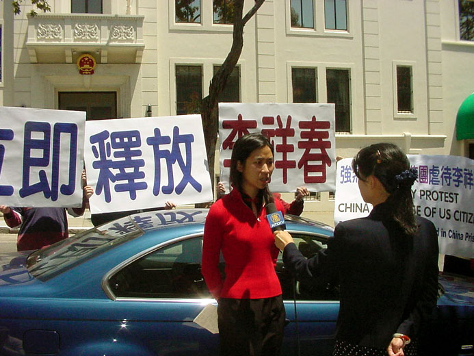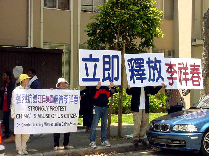 今天是李祥春被强行灌食的第四天。法轮功学员在得知这一消息后,立即来到中领馆前,强烈抗议中国政府对美国公民的虐待,并要求立即释放李祥春。