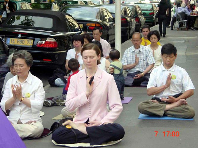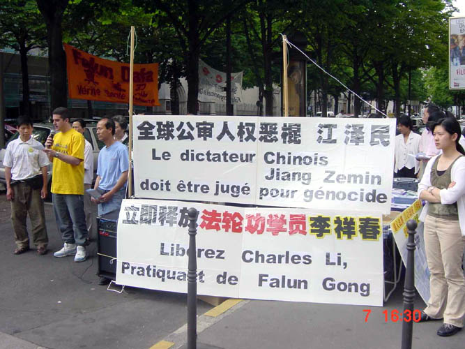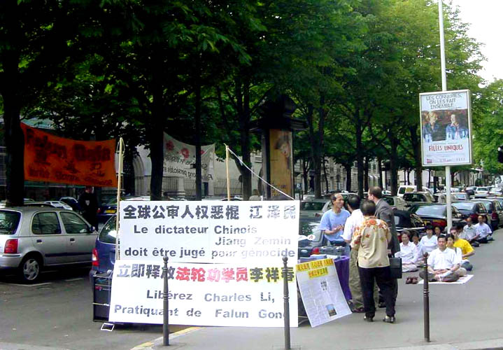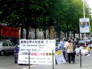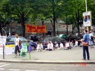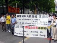 学员历数江泽民八宗罪的强大声音引得使馆官员出来观察。在使馆前执勤的警察事后告诉学员说,“听得非常清楚。”