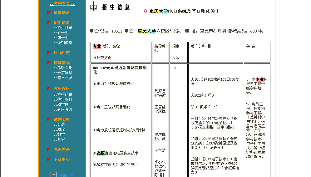 2)重庆大学的研究生招生目录