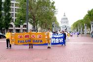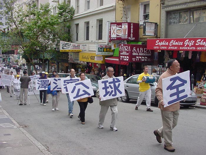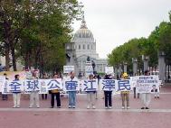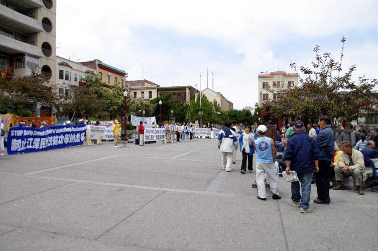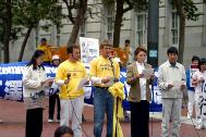 旧金山法轮功发言人曾勇在集会上向唐人街花园角广场的华侨民众说,中国政府镇压迫害法轮功已经快四个年头了,我们的学员几年来一如既往地来到这里,以平和、善良和理性的方式,向旧金山人民和海内外人民讲清法轮功的真象。由于中国政府的少数当权者操控的国家机器以及驻外机构的宣传和造谣,很多的侨胞对我们曾有过误解,有过敌对。而我们,不求任何名利,花费我们自己的工作和休息的时间,从湾区甚至更远的地方开车过来,只是为了向大家一而再,再而三地讲述我们的诚意,讲述法轮功的无辜和冤屈,和我们希望大家明辨是非、不被谎言所蒙骗的心愿。我们相信日久天长,我们终究会被理解,大家终究会了解真象。