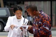 当天,各种醒目真相横幅展板排列在花园角广场,询问与索取真相材料的人流不停,他们都能清楚地看见这些横幅,如:“控告江××群体灭绝罪”,“立即释放李祥春”,以及“制止江××对法轮功学员的虐杀”等。