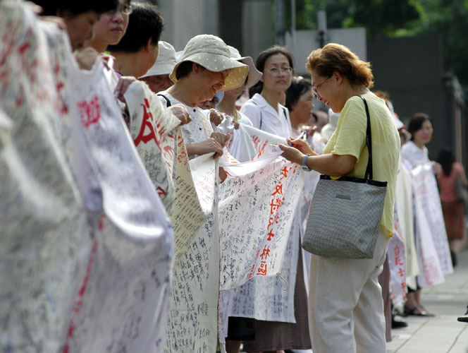 现场一位在布条上签名的郑姓台北市民说,香港政府不应该这样剥夺人民的自由,「以后香港人民讲话要小心,不能乱讲话。」她自己一年要去香港观光或探亲二、三趟,一旦立法通过,她将无法在香港畅所欲言。