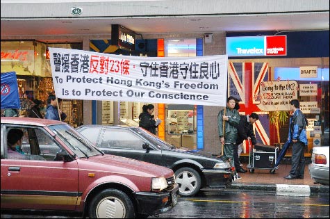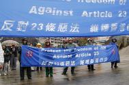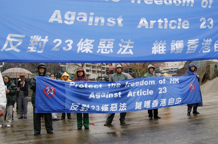 游行在时急时缓的风雨中沿奥市最繁华的皇后大街上行进。在游行队伍中,写着“声援香港反对23条”、“维护香港自由,反对23条”、“守住香港,守住良心”的蓝色横幅格外引人注目。在一个半小时的游行过程中,向沿途行人散发关于23条立法事实的材料,并由领队人士用英语一路沿途解说。虽是周日,仍有不少行人拿到材料后认真阅读。