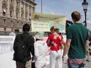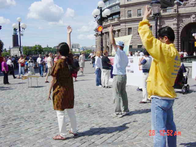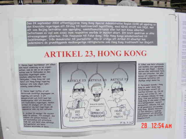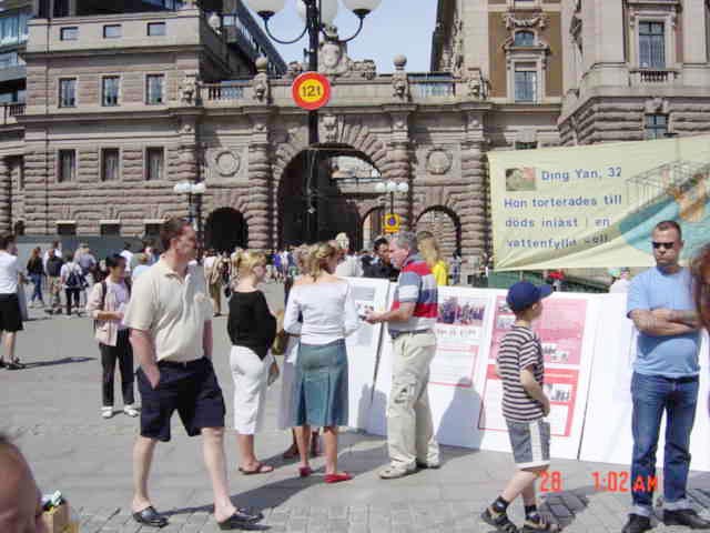 【明慧网2003年7月1日】6月28-29日,瑞典斯德哥尔摩大法弟子分别在瑞典国会大厦前和中使馆前,进行了图片展和征集签名活动。坚决反对23条在香港立法,声援香港人民将在7.1举行的反23条立法大游行。