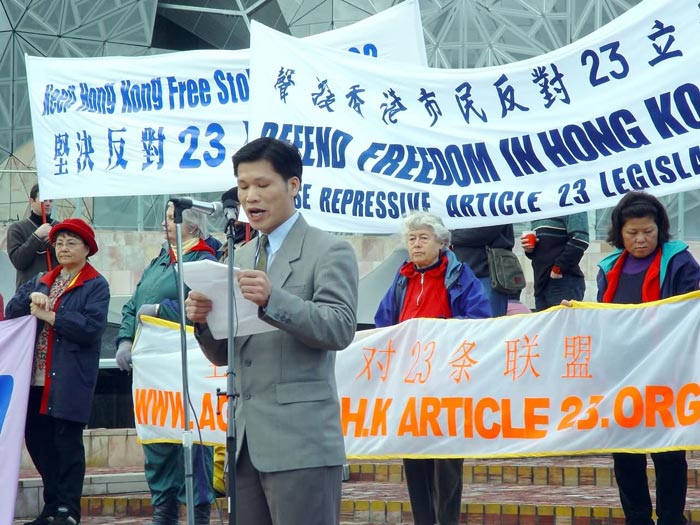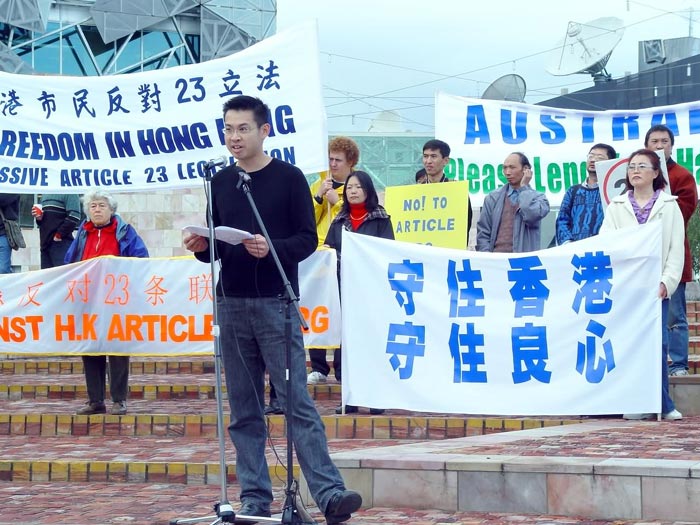 香港社区代表Wing Tang先生说,虽然身为澳洲公民,但他也不能逃脱23条的限制,因为该法规定:在香港境内的人,无论国籍如何(包括过境者和来访者),都受23条立法的限制,轻者一般入狱7年,重者终身监禁;如是香港永久居民,不管身在何方,都受此法律限制,如违反23条可被引渡回港。23条意味着任何港府认为是煽动性的言论都可入罪,无论此言论是口头的、书面的、还是电子形式的;发表此言论的人有罪、听到的人有罪、知情不报者还有罪。而且,条文中有意偷换概念,混淆国家与政府的概念。在民主自由的国家,公民有监视、弹劾政府的权利,而在23条立法中规定反对政府就是反对国家。