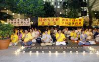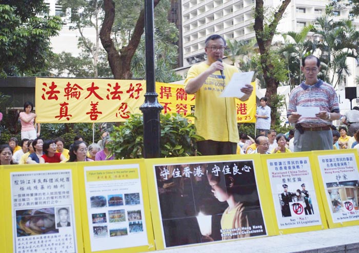 有人呼吁游行人士穿着着色衣服参加「反对23,还政于民」游行,上身穿黑衣表达反对二十三条,下身穿黑裤黑裙表示「倒董」。不过,香港法轮功学员今天仍一如既往穿上黄色的炼功服参与,而且也不会高喊口号,作无声抗议。