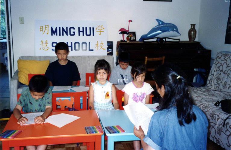 渥太华明慧分校课程编排有发正念,炼功,读拼音版《转法轮》、《洪吟》,唱大法弟子创作的歌颂大法的歌曲,看大法真象影片,中国传统文化基础教学、汉语拼音教学等,最后是心得体会交流。第一天上课,5个孩子参加。让我们惊奇的是,这些小弟子平时活泼爱玩的劲,一读起法来,全都是正正经经、认认真真地不溜号。唱大法小弟子的歌时,幸福快乐洋溢在脸上。第二堂课更多家长将孩子送到明慧学校,最小的不到5岁,最大的11岁。在炼功时,孩子们随着师父的口令和音乐,动作整齐、认真。两个6岁的孩子,还互相纠正动作。学法时,孩子们齐声朗读,精力集中,声音洪亮。看到孩子们稚气、认真的神态举止,真为他们能在大法中熔炼,感到高兴。