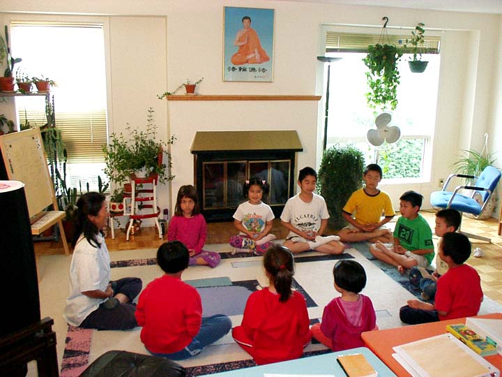 第二次课,我们加了一堂品德课,引导孩子们实修,从日常生活中与人应对的行为开始,一举一动按照法的要求做,学习如何珍重别人,关心别人,遇事向内找。孩子们心灵纯净,没有那么多观念污染,装进什么,就是什么,他们同化法是自然轻松的。在面对孩子们的纯真,就如同一面镜子,对照着我们大人向内找。在这里,我们是和小弟子“比学比修,共同精进”(《洪吟》“实修”)的。